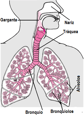 El O2 llega a los alveolos con el aire que inhalamos. Expulsamos el CO2 con el aire que exhalamos. El aire es conducido hasta los alveolos por las vías respiratorias, que comprenden nariz, boca, garganta, tráquea, y bronquios que se van dividiendo en ramas cada vez más numerosas y pequeñas llamadas bronquiolos.