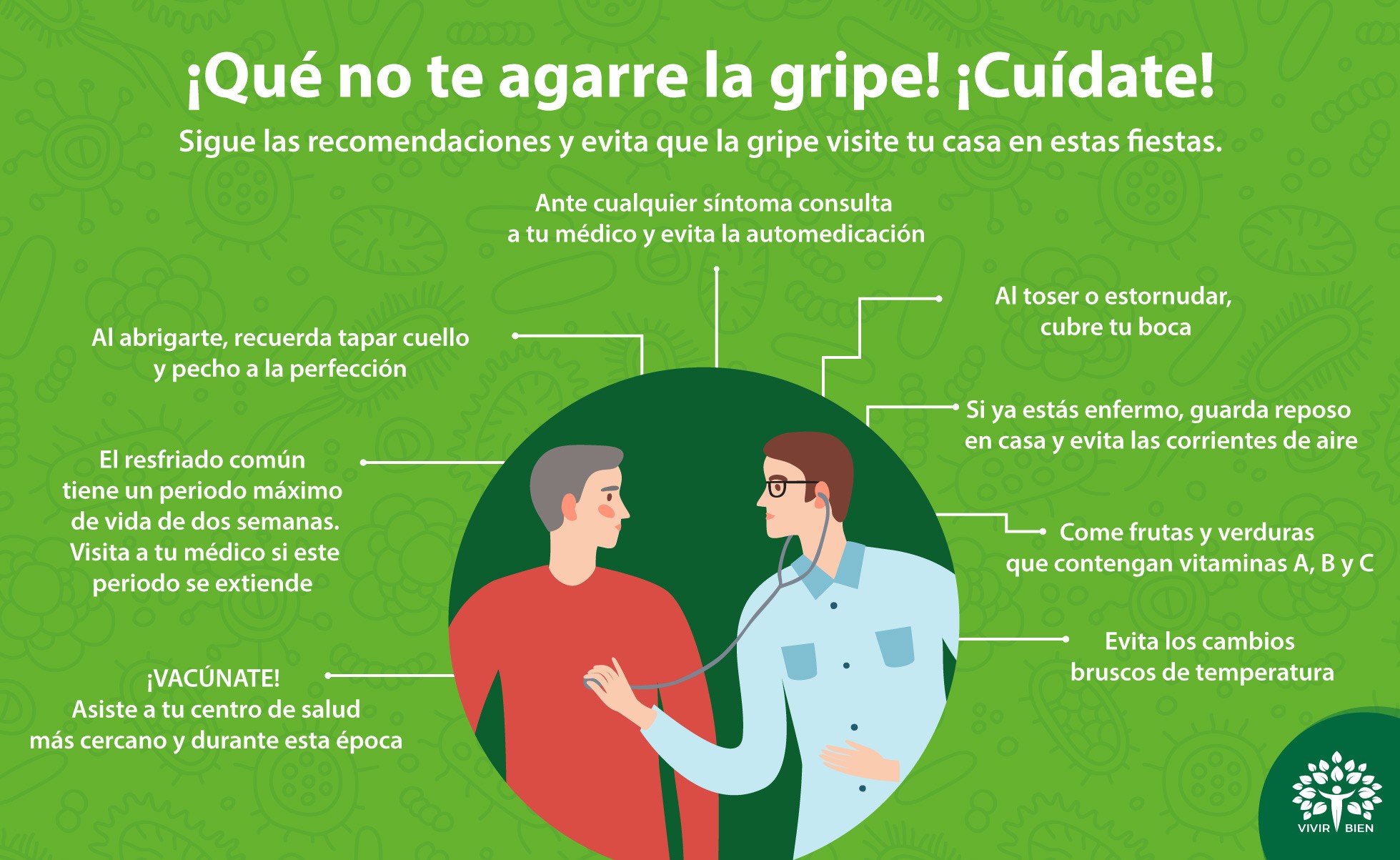 ¡Qué no te agarre la gripe! ¡Cuídate! En épocas de frío es mejor prevenir, cuidar de tu familia es tarea de cada uno de los miembros de ella. Vivir Bien